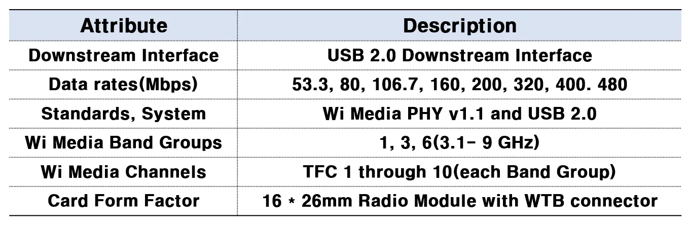 All WiMedia Data Rates : 53.3 to 480Mbps
